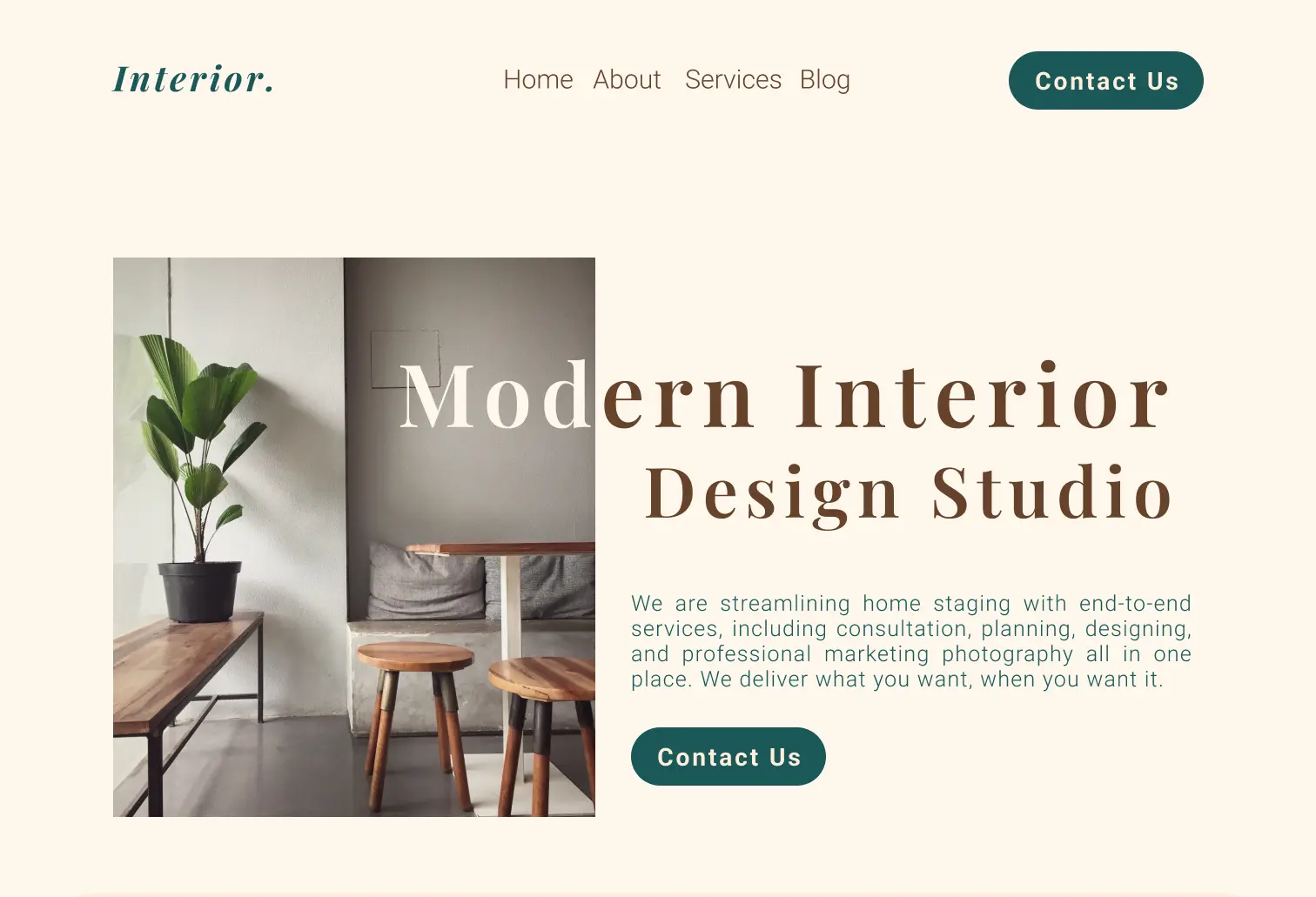 A design concept - a website design for an Interior design studio optimized for generating leads & creating a social presence with the help of blogs